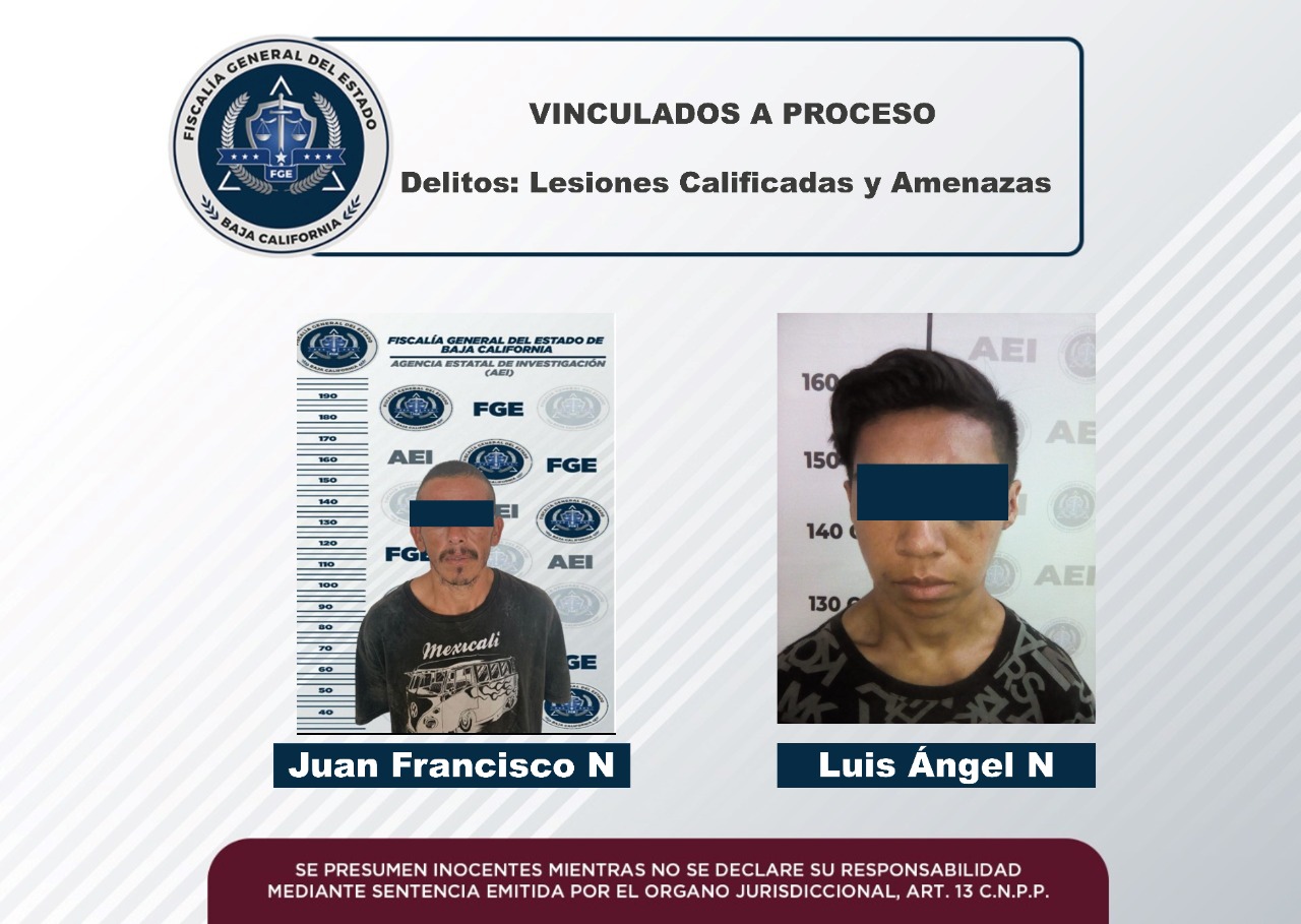 La Fiscalía Regional de Mexicali, logró la vinculación a proceso penal de dos hombres como resultado de la integración de las carpetas de investigación a cargo de la Unidad de Investigación con Detenidos Oriente y la Unidad de Delitos contra las Personas y su Libertad.