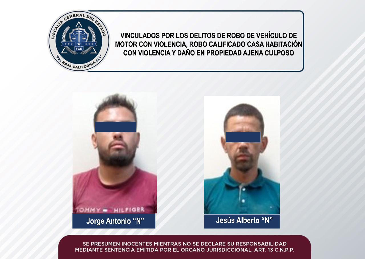 La Fiscalía Regional de Mexicali a través de la Unidad de Robo de Vehículos Oriente obtuvo la vinculación a proceso en contra de dos sujetos relacionados en varios robos en la Zona Oriente de la ciudad.