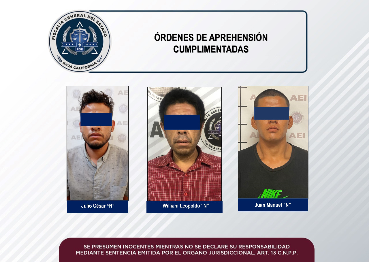 Elementos de la Fiscalía Regional de Mexicali detuvieron a tres sujetos en distintos puntos de la ciudad, que contaban con mandamientos judiciales en su contra.