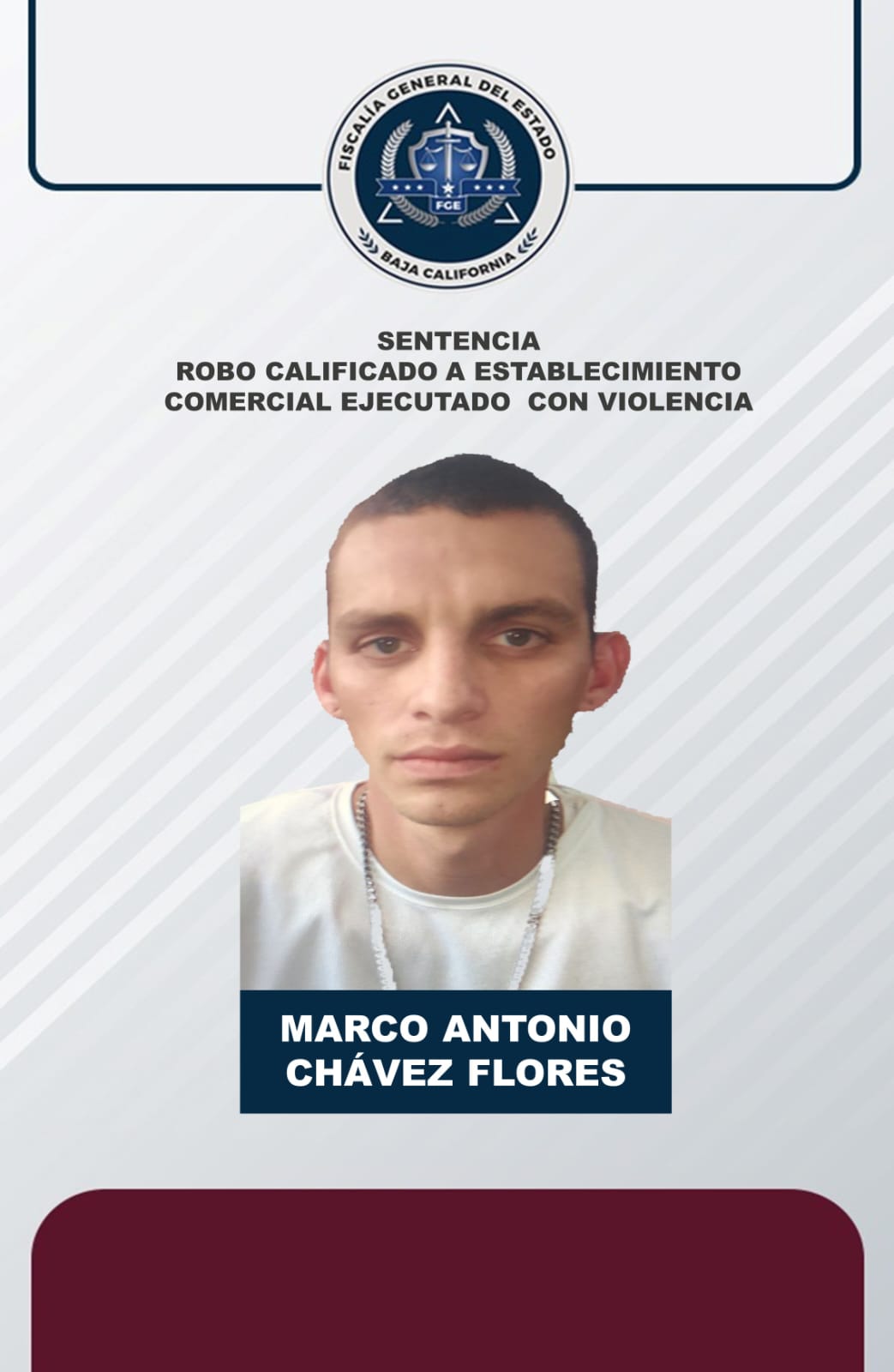 FGE obtiene sentencia de cuatro años de prisión contra asaltante en Ensenada