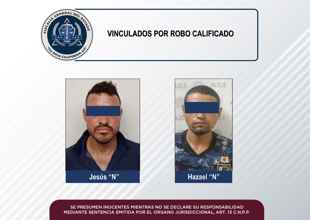 MEXICALI, B. C. - La Fiscalía Regional de Mexicali a través de la Unidad de Investigación de Detenidos Poniente, logró vincular a proceso a dos sujetos acusados de robo calificado.