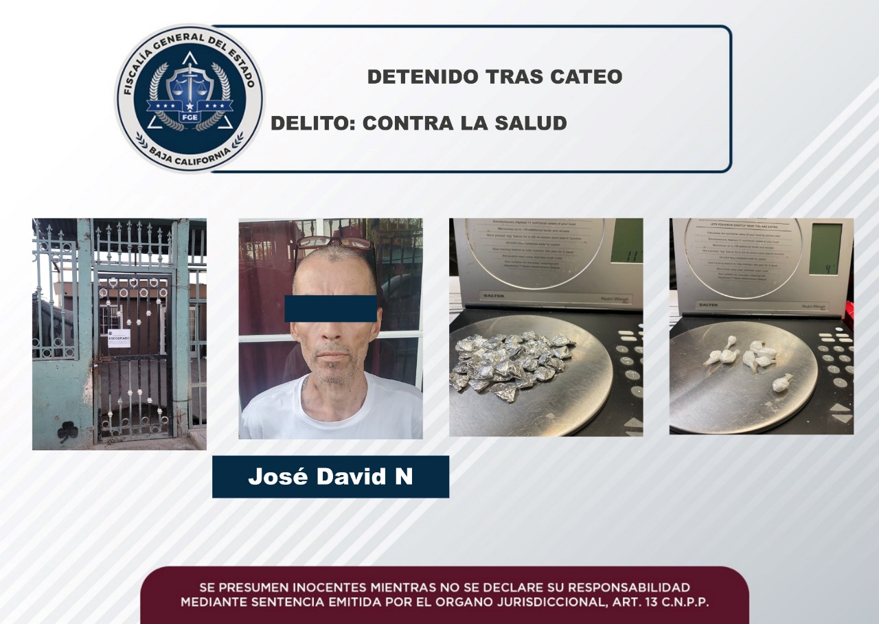 MEXICALI, B. C. - La Fiscalía General del Estado, a través del Ministerio Público y elementos de la Agencia Estatal de Investigación de la Fiscalía Especializada en Narcomenudeo Zona Mexicali, dando seguimiento a denuncias anónimas en cuanto a este ilícito, cumplimentó una orden de cateo.