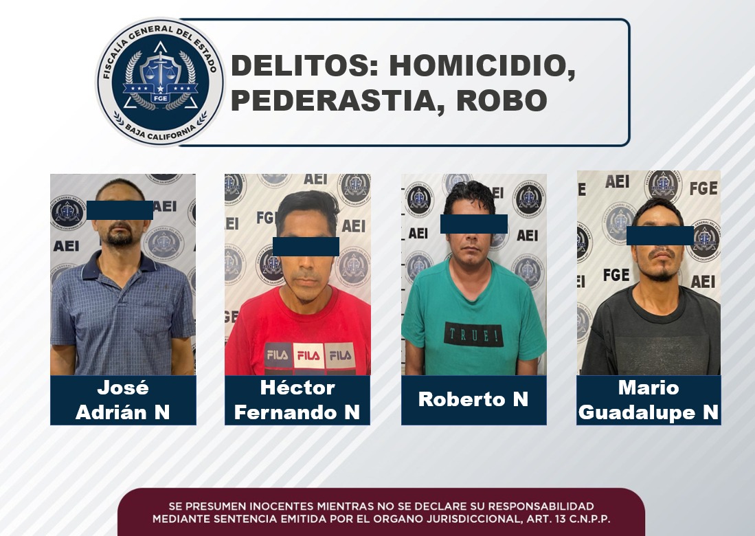 TIJUANA, B. C. - La Fiscalía General del Estado, por medio de la Unidad de Aprehensiones de la Agencia Estatal de Investigación (AEI), logró la captura de cuatro imputados, quienes eran requeridos por contar con mandamientos judiciales vigentes en su contra.