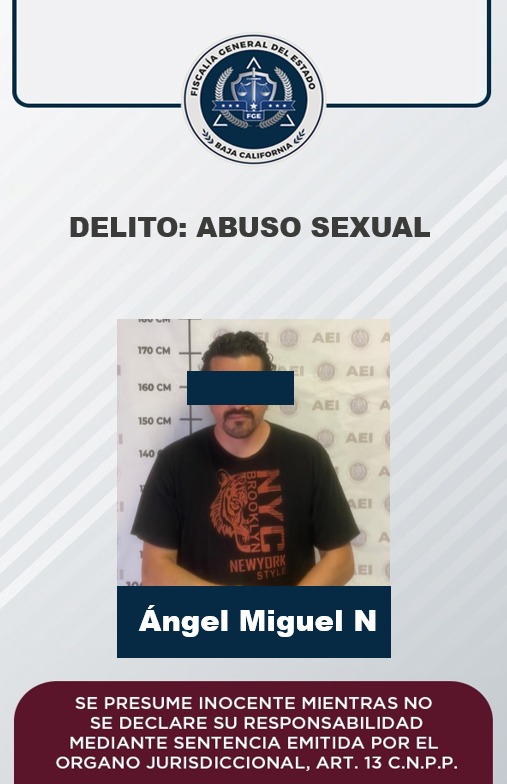 PLAYAS DE ROSARITO, B. C. - Por la probable comisión en el delito de abuso sexual a menor de catorce años de edad agravado, agentes de la Fiscalía General del Estado, aprehendieron a Ángel Miguel “N”.