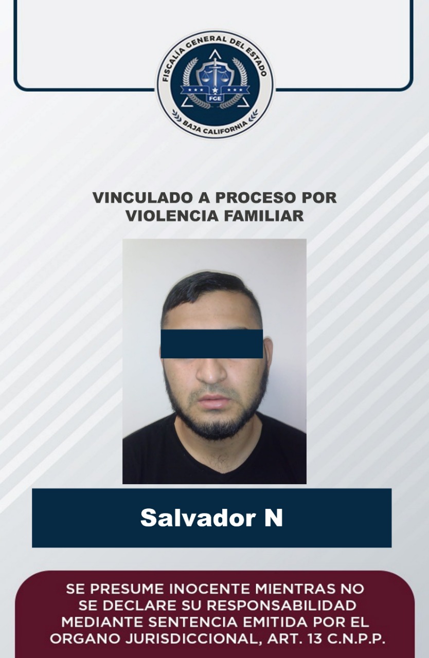 MEXICALI, B. C. - La Fiscalía Regional de Mexicali, obtuvo la vinculación a proceso penal de un hombre por el delito de violencia familiar, esto como resultado del trabajo realizado por la Unidad de Investigación Foránea de San Felipe, en la integración de la carpeta de investigación.