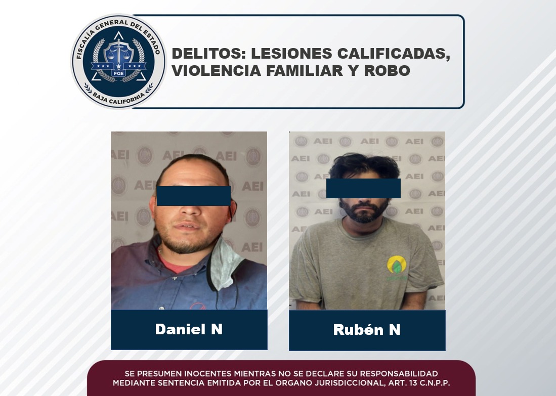 TECATE, B. C. - La Fiscalía Regional de Tecate, a través de elementos de la Agencia Estatal de Investigación (AEI) capturaron a dos sujetos que contaban con mandamientos judiciales activos en su contra.