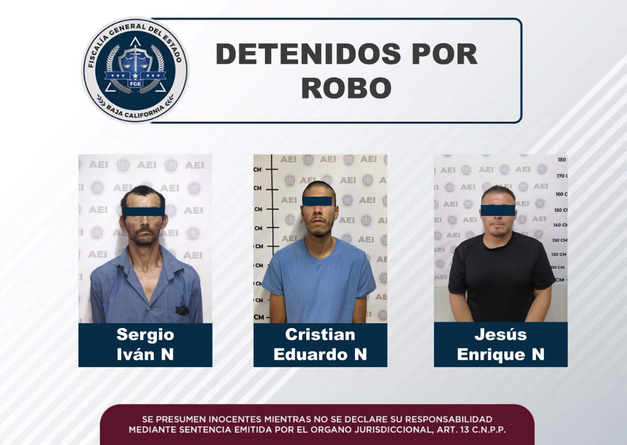 ENSENADA, B. C. - La Fiscalía Regional de Ensenada, a través de la labor de la Unidad de Investigación de Robos, logró la vinculación a proceso y medida cautelar de prisión preventiva oficiosa contra dos sujetos, además cumplimentó orden de aprehensión en contra de otro.