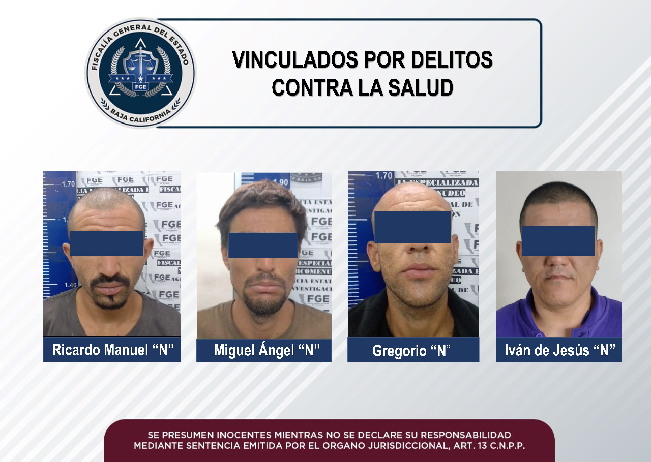 Mexicali, B. C. - La Fiscalía General del Estado (FGE) implementa acciones operativas en contra del narcomenudeo, a fin de sacar de las calles a los individuos que se dedican a la venta y distribución de droga, en esta ocasión, se obtuvo la vinculación a proceso de cuatro sujetos por el delito contra la salud.