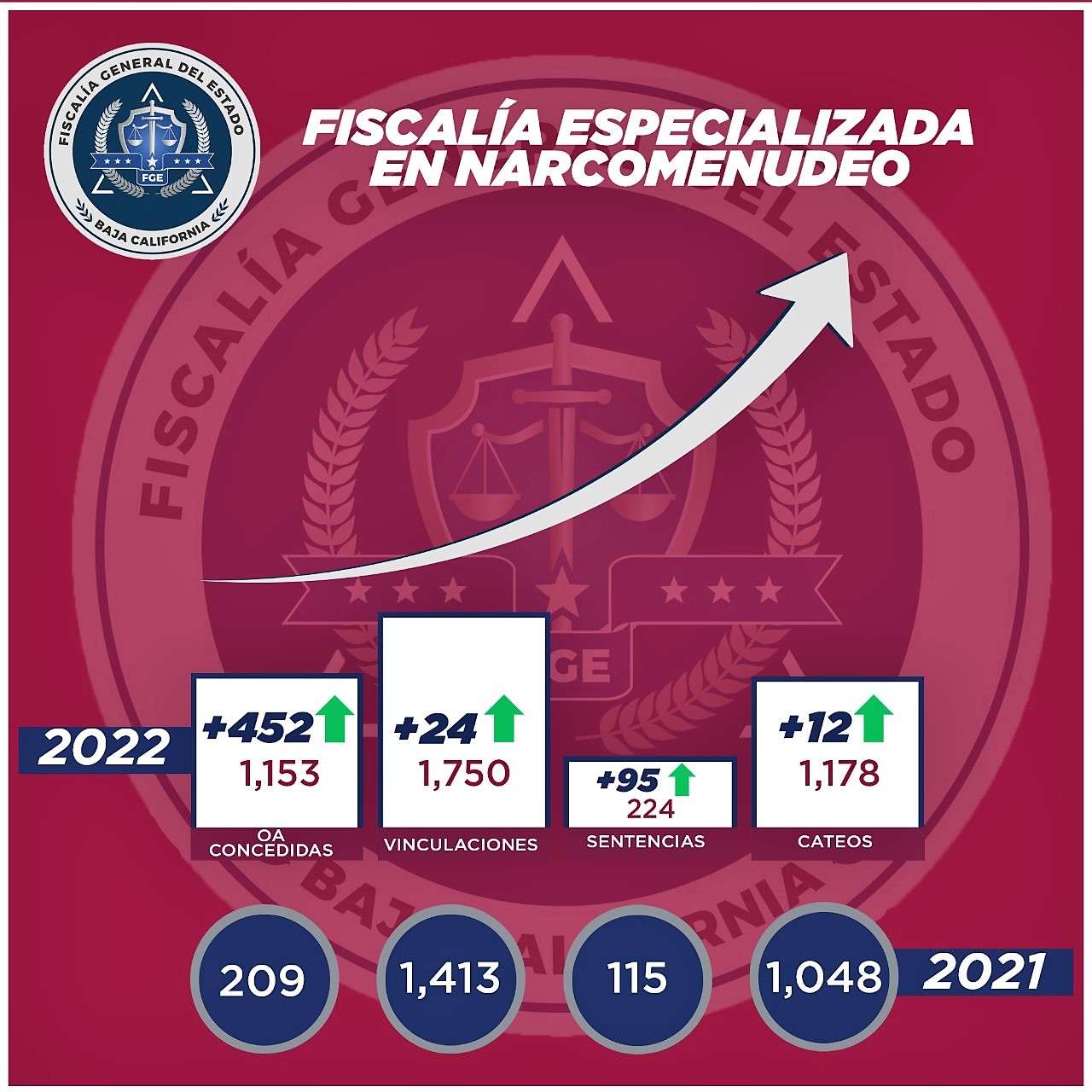 Así lo refirió el Fiscal General del Estado, Ricardo Iván Carpio Sánchez, quien resaltó el trabajo realizado por el personal de la Fiscalía Especializada en Narcomenudeo, que en el periodo de enero a agosto de 2022 ha obtenido resultados positivos en comparación con el mismo periodo del año 2021 en trabajos de procuración de justicia, logrando con ello avanzar en mantener las drogas y los vendedores de estas alejados de las niñas, niños y adolescentes de nuestro estado.