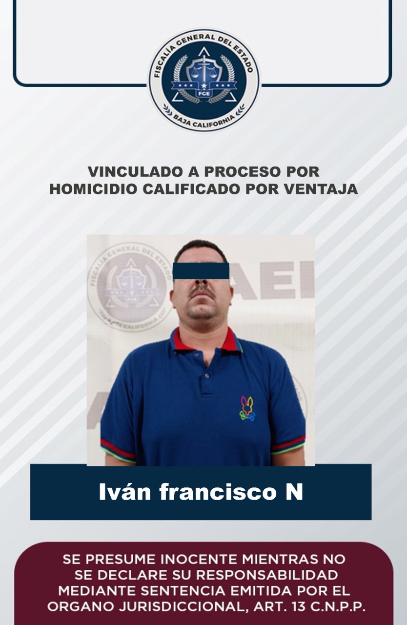 MEXICALI, B. C. - La Fiscalía General del Estado a través de la Fiscalía Especializada en Delitos Contra la Vida, logró la vinculación a proceso de Iván Francisco “N”, por su presunta responsabilidad en el homicidio de un hombre.