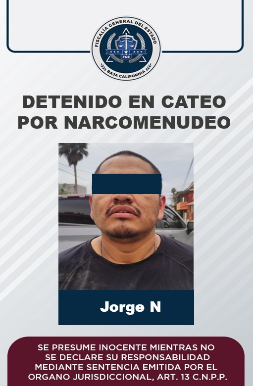 PLAYAS DE ROSARITO, B. C. - Como parte de la estrategia permanente de la Fiscalía General del Estado para sacar de las calles a los vendedores y distribuidores de narcóticos, se ejecutó una orden de cateo en Playas de Rosarito, misma que derivó en la detención de una persona y el decomiso de envoltorios de droga.