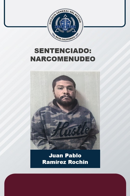 TECATE, B. C. - Mediante un procedimiento abreviado, la Fiscalía Regional de Tecate logró que a Juan Pablo Ramírez Rochin se le impusiera una pena de 7 meses de prisión por resultar penalmente responsable del delito contra la salud en su modalidad de narcomenudeo, posesión simple del psicotrópico denominado metanfetamina.