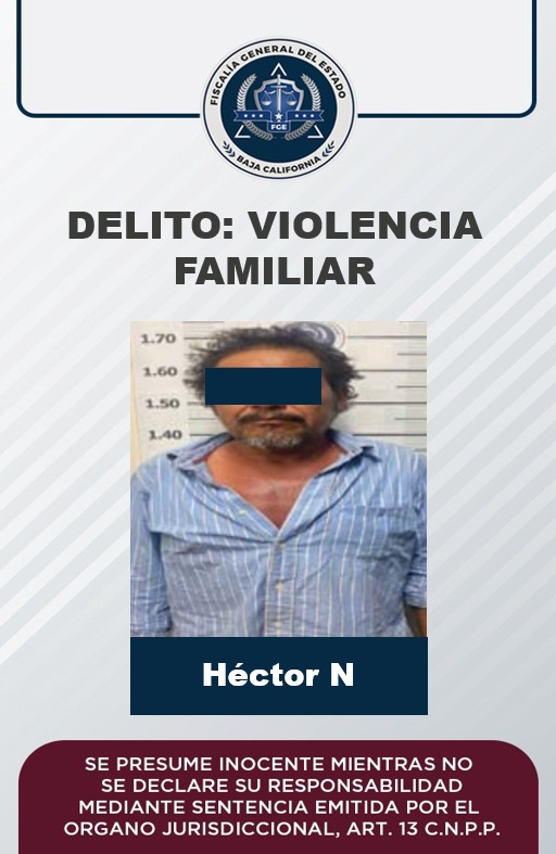 PLAYAS DE ROSARITO, B. C. - Mediante labor desarrollada por la Fiscalía Regional de Playas de Rosarito, a través de la Coordinación de Unidades de Investigación con Detenido, fue posible obtener la vinculación a proceso de Héctor “N”, acusado del delito de violencia familiar.