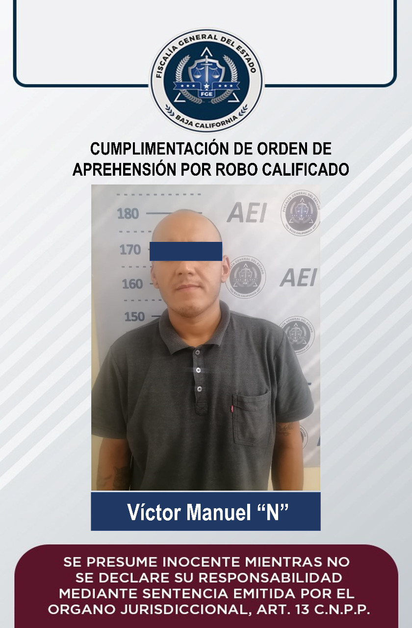 Mediante seguimiento a información recabada en gabinete y campo, se logró cumplimentar en las inmediaciones de la colonia Industrial, una orden de aprehensión emitida por la Juez de Control, por el delito de robo calificado cometido de noche, en contra de Víctor Manuel “N”.