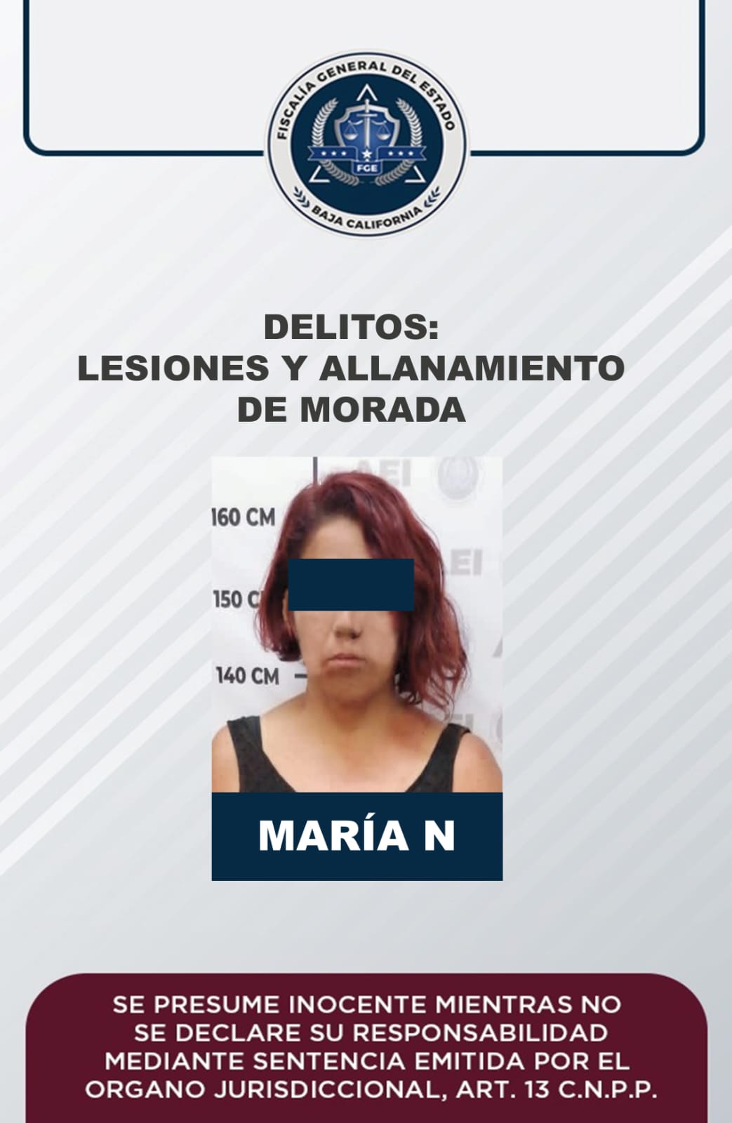Determinan prisión preventiva contra detenida por lesiones y allanamiento de morada