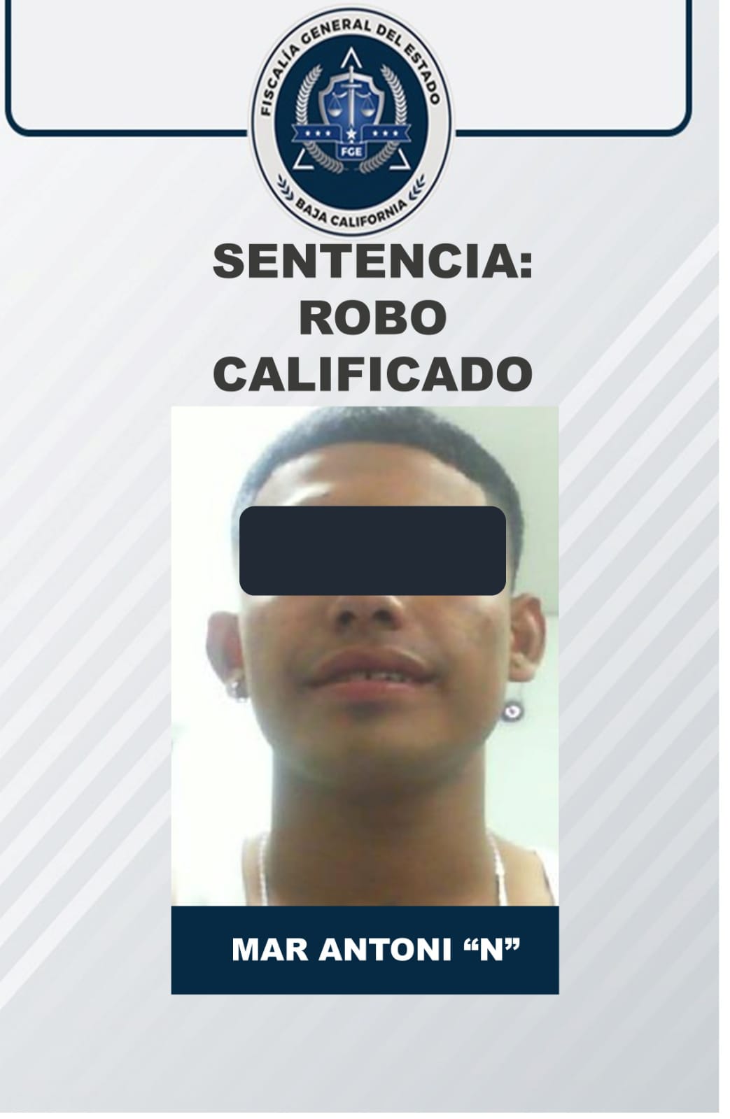 La Fiscalía Regional de Ensenada, logró fallo condenatorio contra Mar Antoni “N”, por la comisión de robo calificado cometido por dos o más personas ejecutado con violencia, en el 2021.