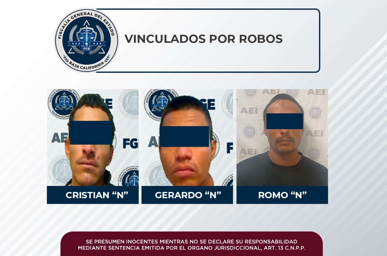 Tres hombres relacionados en diversos robos con violencia a establecimientos comerciales, fueron vinculados a proceso por la Fiscalía Regional de Mexicali, a través de la Unidad de Investigación de Robos Oriente.