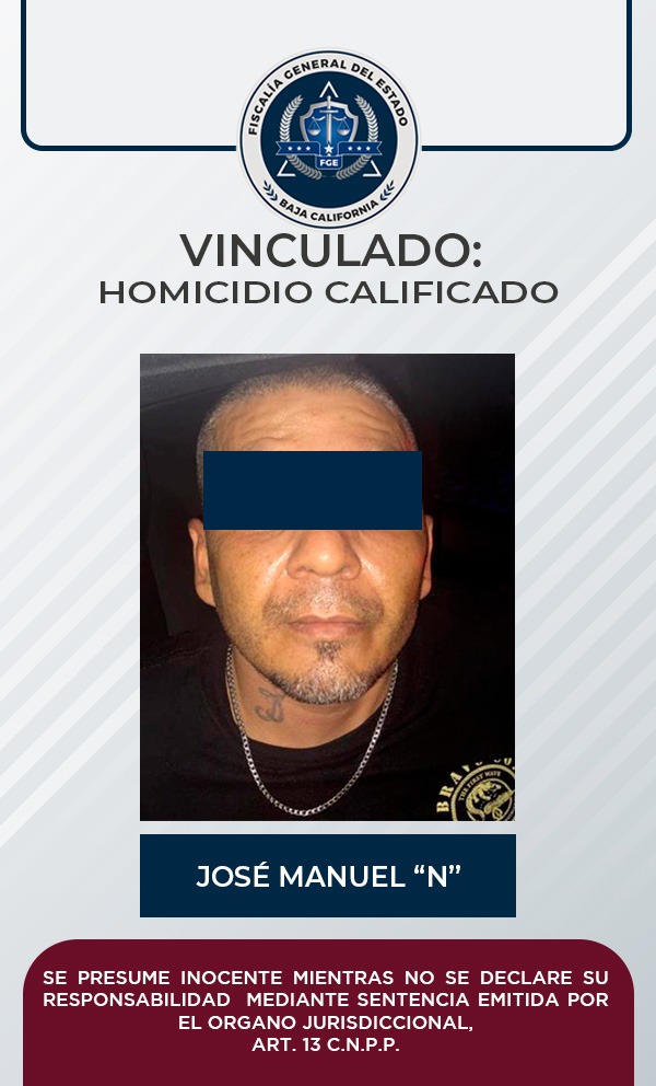 MEXICALI, B. C. - Por su presunta responsabilidad en el doble homicidio de mandos de la Dirección de Seguridad Pública de San Felipe, la Fiscalía General del Estado (FGE) logró la vinculación a proceso de José Manuel “N”.