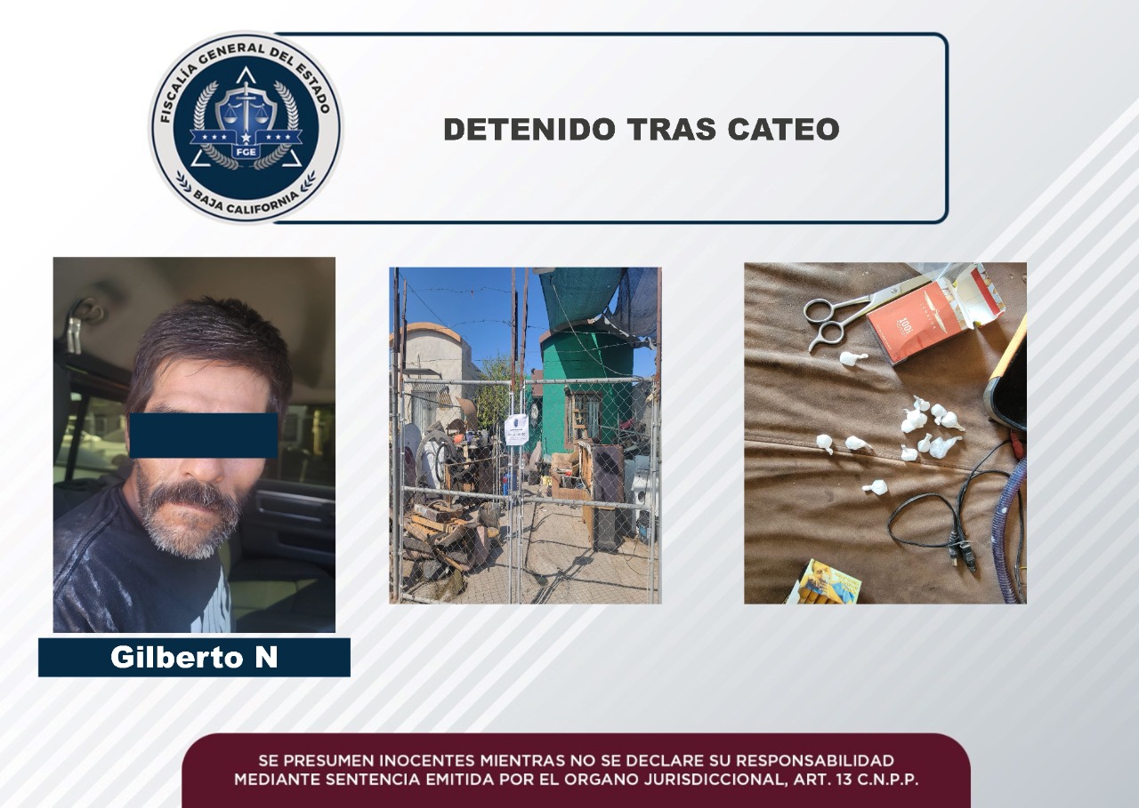 MEXICALI, B. C. - La Fiscalía General del Estado, a través de la Fiscalía Especializada en Narcomenudeo Zona Mexicali, en coordinación con el Ministerio Público y elementos de la Agencia Estatal de Investigación (AEI), cumplimentó una orden de cateo en la zona Oriente de la ciudad, dando seguimiento a una denuncia anónima en cuanto a este ilícito.