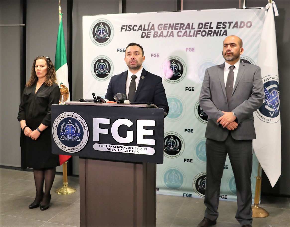 Acompañaron al Fiscal del Estado, el Fiscal Regional de Tijuana, Edgar Mendoza Razo y la Fiscal Especializada en Delitos Contra la Mujer por Razón de Género, Adriana Lizárraga González.