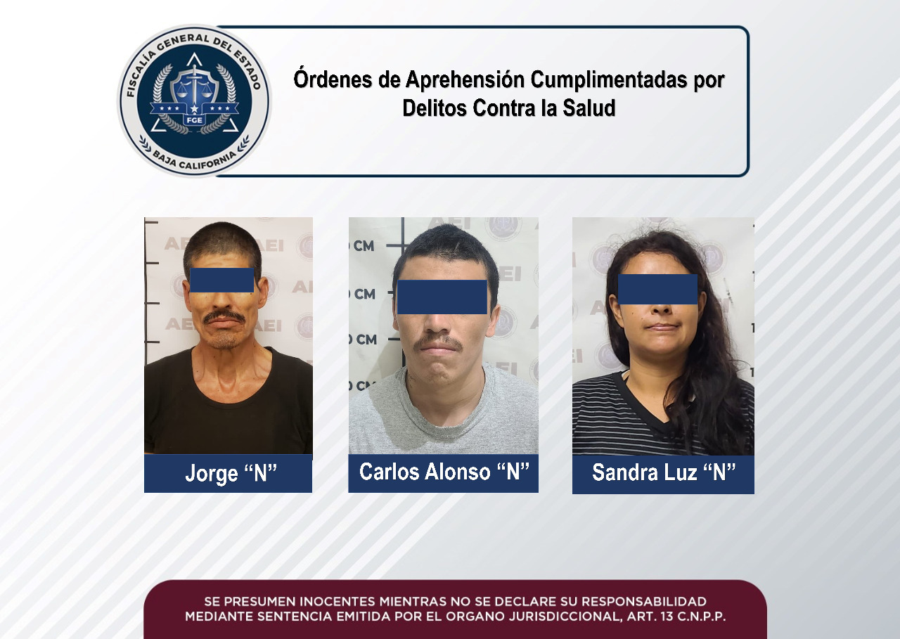 MEXICALI, B.C. - 3 DE OCTUBRE DE 2022.- Un operativo especial realizado por elementos de la Agencia Estatal de Investigación (AEI) dio como resultado el aseguramiento de tres individuos que contaban con orden de aprehensión por delitos contra la salud.