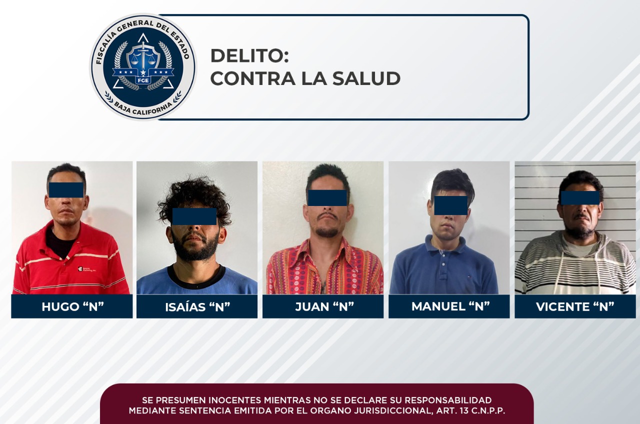 TIJUANA, B.C. - La Fiscalía General del Estado, logró con las pruebas aportadas por el Ministerio Público en audiencias judiciales, que quedaran vinculados a proceso penal cinco imputados por el delito contra la salud en la modalidad de posesión de psicotrópicos.