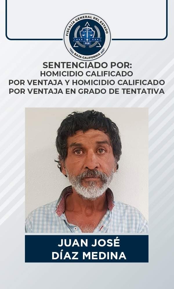 MEXICALI, B. C. - La Fiscalía General del Estado (FGE), a través de la Fiscalía Especializada en Delitos Contra la Vida, logró una sentencia de 53 años y 4 meses de prisión en contra de Juan José Díaz Medina, implicado en un doble homicidio y homicidio en grado de tentativa.