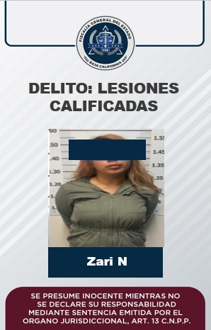 PLAYAS DE ROSARITO, B. C. - Una mujer que responde al nombre de Zari “N” fue vinculada a proceso por su probable responsabilidad en el delito de lesiones calificadas, lo anterior, una vez que la Fiscalía Regional de Playas de Rosarito, aportara los elementos necesarios para avanzar en la investigación.