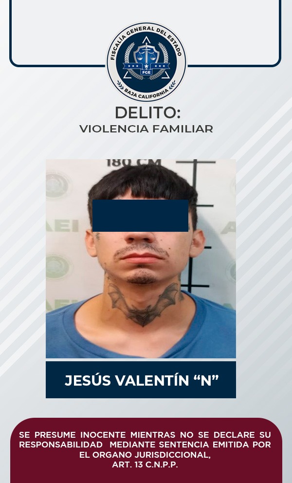 TIJUANA, B. C. - La Fiscalía Regional de Tijuana presentó los datos de prueba necesarios y solicitó se resolviera la situación legal de Jesús Valentín “N”, por su presunta participación en el delito de violencia familiar, por lo que el Juez de Control, después de valorar los elementos aportados por el Ministerio Público, decretó el auto de vinculación a proceso en su contra.