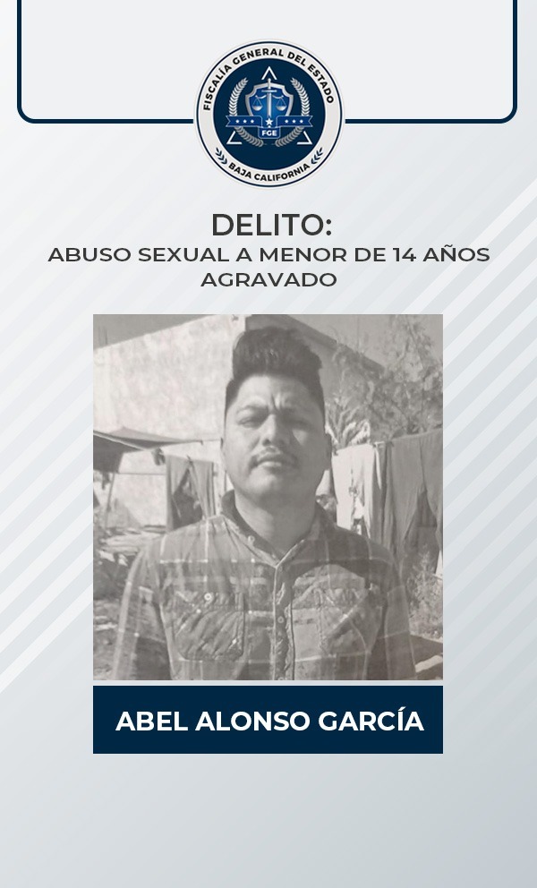 PLAYAS DE ROSARITO, B. C. - La Fiscalía General del Estado informa que fue sentenciado a una pena de 8 años de prisión, un sujeto que fue encontrado culpable de haber cometido el delito de abuso sexual a menor de 14 años agravado, por hechos ocurridos en el mes de noviembre de 2019.