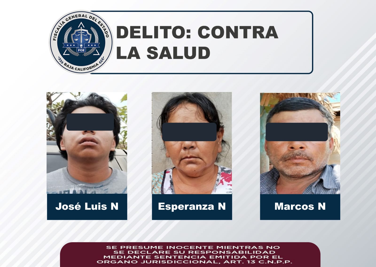 SAN QUINTÍN, B.C - Investigación efectuada por agentes de la Fiscalía General de Baja California, culminó con la detención de tres personas y el aseguramiento de dos predios, dentro de los cuales, se encontraron diversos tipos de droga.