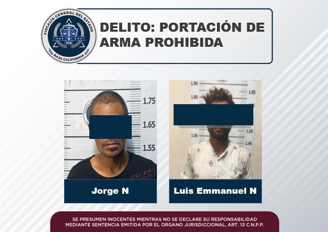 Dos sujetos vinculados a proceso por el delito de portación de arma prohibida: Fiscalía Regional de Playas de Rosarito