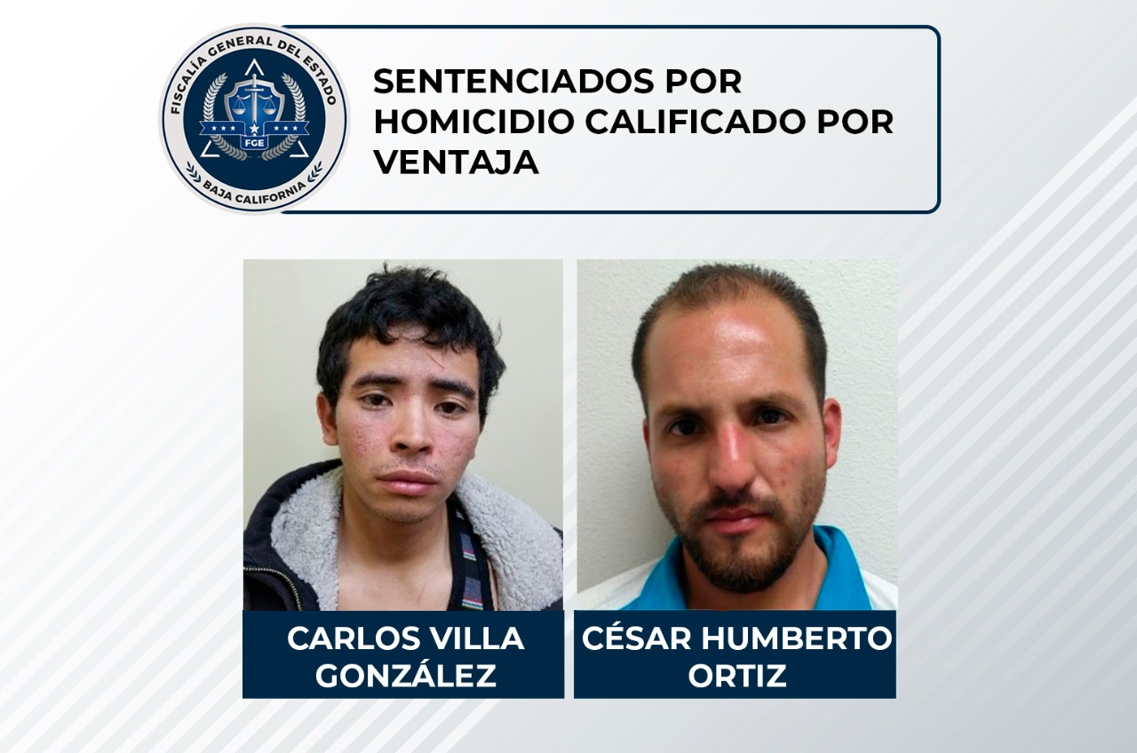 MEXICALI, B.C. - La Fiscalía General del Estado (FGE), a través de la Fiscalía Especializada de Delitos Contra la Vida logró una sentencia de 20 años de prisión, además del pago por la reparación del daño, en contra de dos acusados de homicidio calificado por ventaja.
