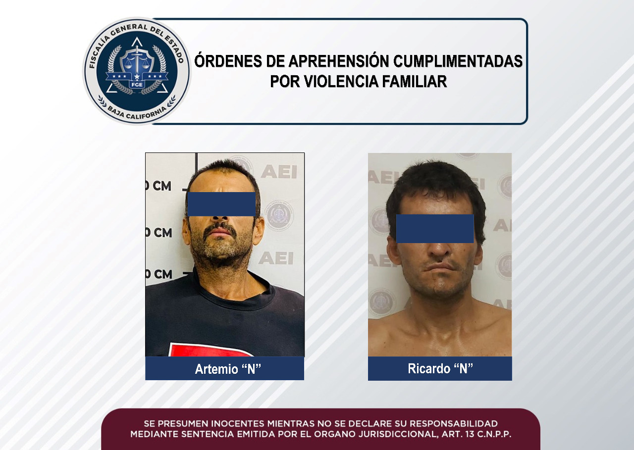 MEXICALI, B. C. - Elementos de la Agencia Estatal de Investigación (AEI) adscritos al Grupo Especializado de Aprehensiones, lograron el aseguramiento de dos sujetos, quienes contaban con mandatos judiciales por agredir a sus familiares.