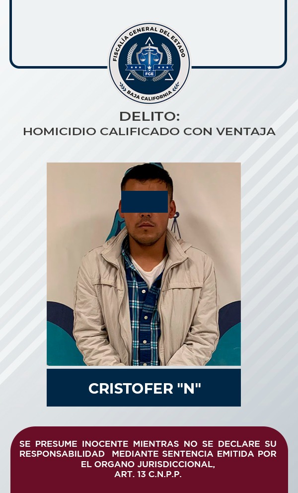 Fue el 28 de septiembre de 2017, cuando se concedió la orden de aprehensión por parte de un Juez de Control del Poder Judicial del Estado de Baja California, en contra de Cristofer, misma que fue cumplimentada en días pasados; en tanto, el imputado quedó a disposición de la autoridad competente para los trámites correspondientes y el debido seguimiento al proceso penal.