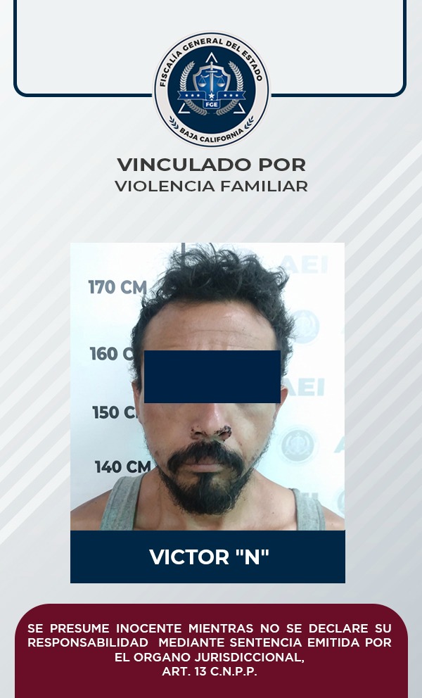 MEXICALI, B.C. - La Fiscalía General del Estado (FGE), a través de la Unidad de Investigación de Delitos con Detenidos Oriente, logró vincular a proceso a un imputado por el delito de violencia familiar.