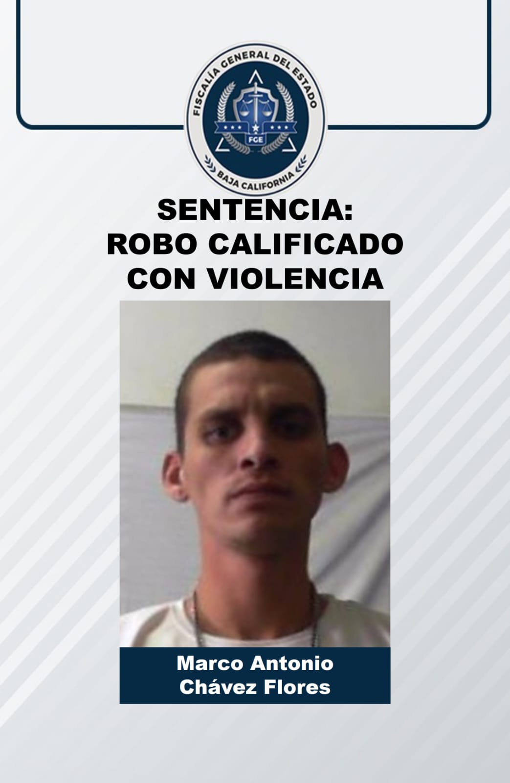 ENSENADA, B. C. - La Fiscalía Regional de Ensenada logró sentencia condenatoria contra Marco Antonio Chávez Flores, por su participación en el robo ejecutado con violencia dentro de una tienda OXXO, donde hurtó dinero en efectivo y botellas de licor.