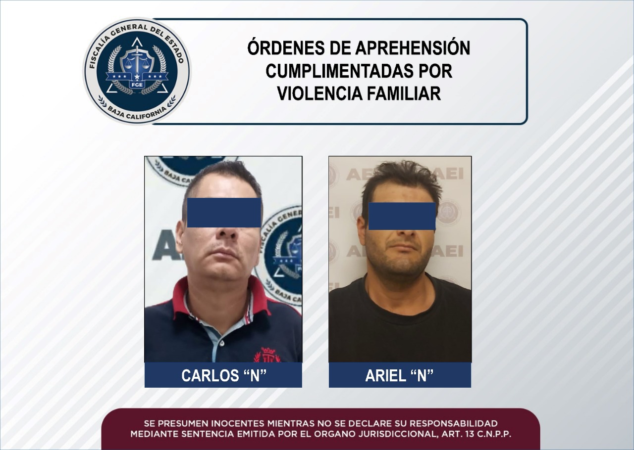 MEXICALI, B. C. - Uno de los objetivos de la Fiscalía General del Estado (FGE), es investigar y perseguir los delitos relacionados con hechos de violencia contra las mujeres, con pleno respeto a los derechos humanos, en esta ocasión los elementos de la Agencia Estatal de Investigación (AEI), cumplimentaron dos órdenes de aprehensión por el delito de violencia familiar.