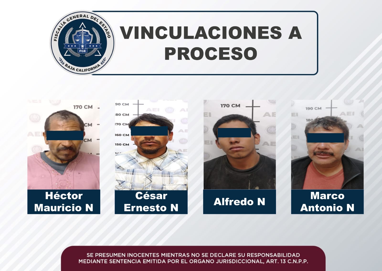 ENSENADA, B. C. - La Fiscalía Regional de Ensenada, por medio de datos de prueba expuestos por el Ministerio Público, obtuvo la vinculación a proceso de cuatro hombres detenidos en flagrancia por la presunta comisión de delitos en distintos puntos de la ciudad.