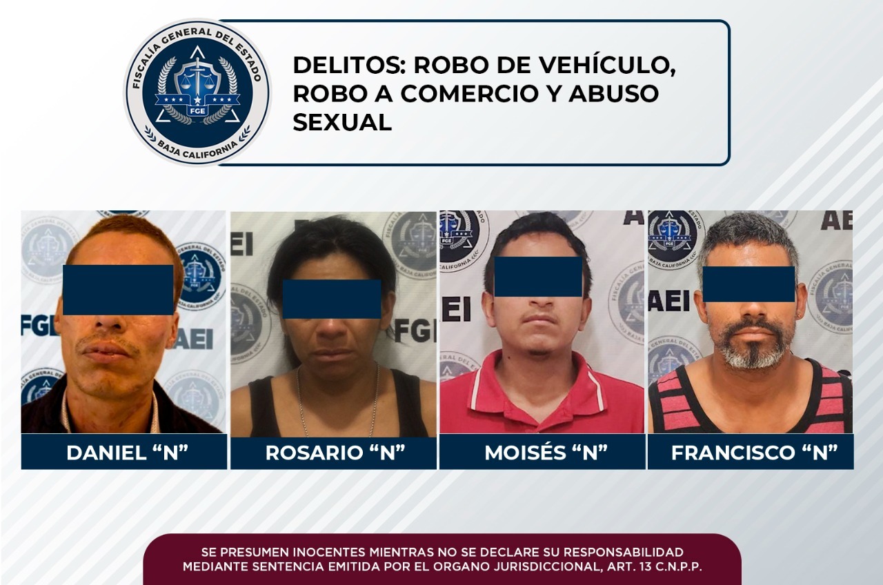 Se trata de tres hombres y una mujer, los cuales están como presuntos responsables en carpetas de investigación elaboradas por el Ministerio Público de la Fiscalía Regional de Tijuana, y la Fiscalía Especializada en Delitos Contra la Mujer por Razón de Género.