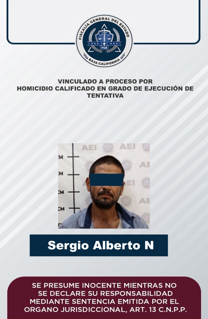 MEXICALI, B. C. - La Fiscalía Regional de Mexicali, a través de la Unidad de Detenidos Poniente, logró la vinculación a proceso de Sergio Alberto “N”, por el delito de homicidio calificado en grado de ejecución de tentativa.