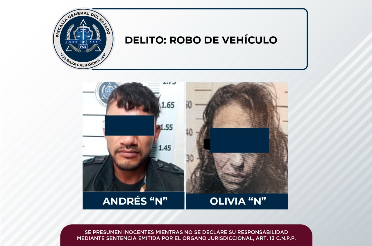 Determina juez prisión preventiva para un hombre y una mujer por robo de vehículo: Fiscalía Regional De Rosarito