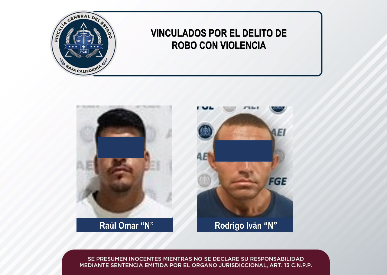 MEXICALI, B. C. - La Fiscalía Regional de Mexicali, a través de la estrategia de fortalecer las investigaciones en el combate al delito de robo y sus modalidades, obtuvo vinculación a proceso en contra de dos individuos, en audiencias por separado.