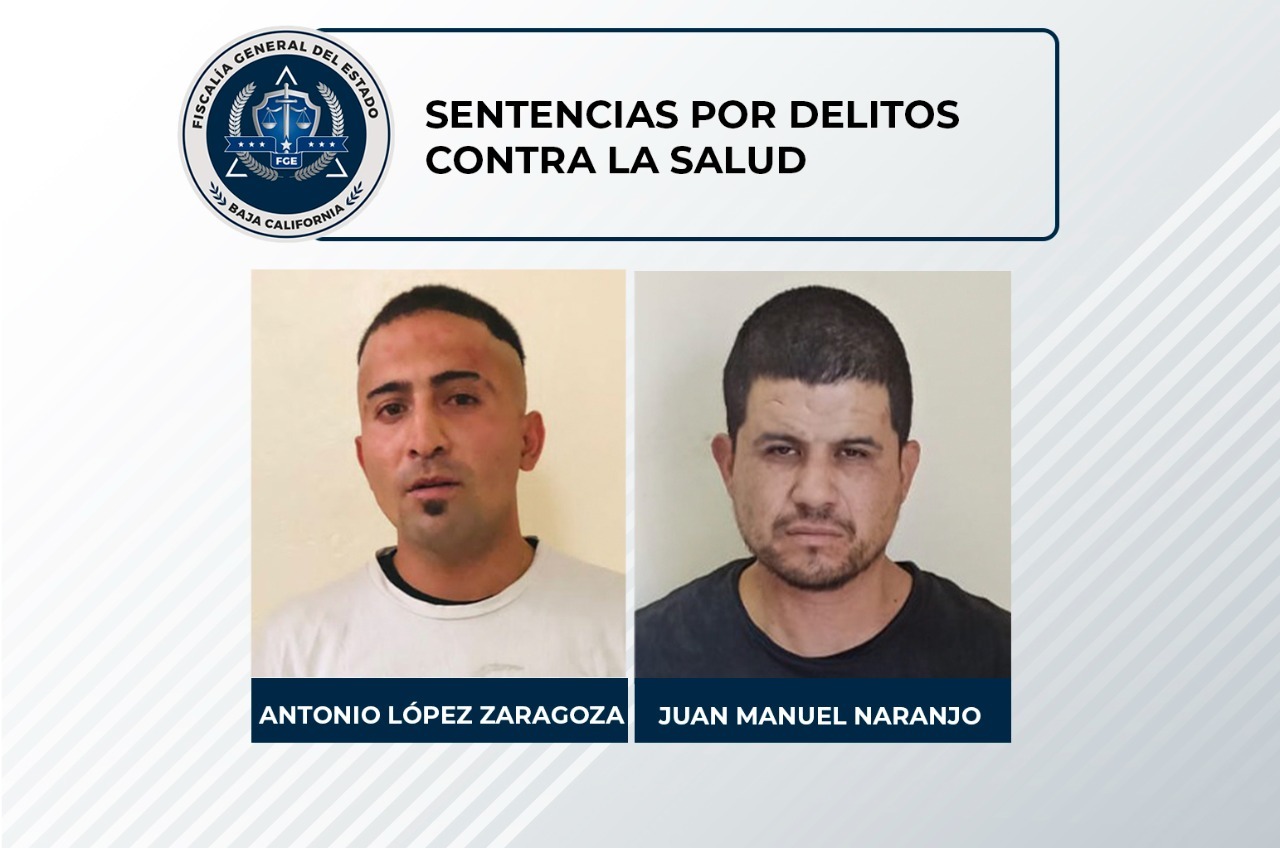 TIJUANA, B. C. - La Fiscalía General del Estado, a través de la Fiscalía Especializada en Narcomenudeo, logró que fueran sentenciados a prisión dos sujetos por delitos contra la salud.