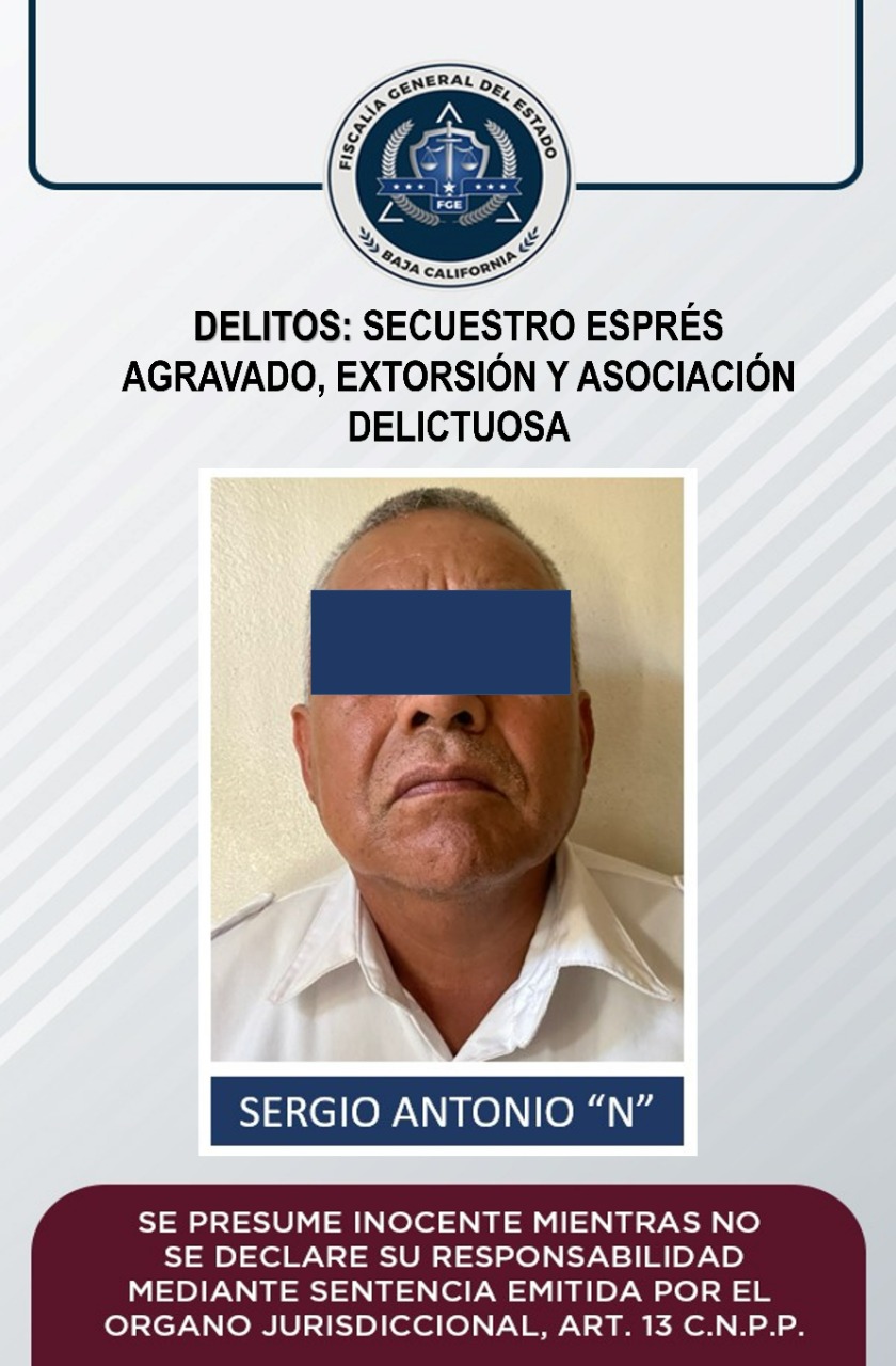 MEXICALI, B. C. - En cumplimiento a la instrucción girada por el Fiscal General de Baja California, Ricardo Iván Carpio Sánchez, personal de la Unidad Especializada en Combate al Secuestro, atendiendo al Convenio de Colaboración solicitado por autoridades de la Fiscalía General del Estado de Sonora, detuvieron a Sergio Antonio “N” acusado de los delitos de secuestro exprés agravado, extorsión y asociación delictuosa.