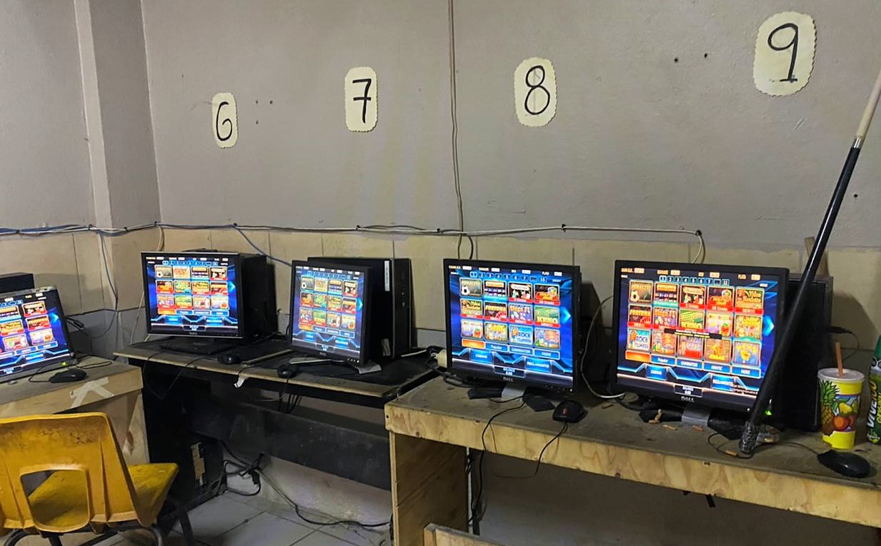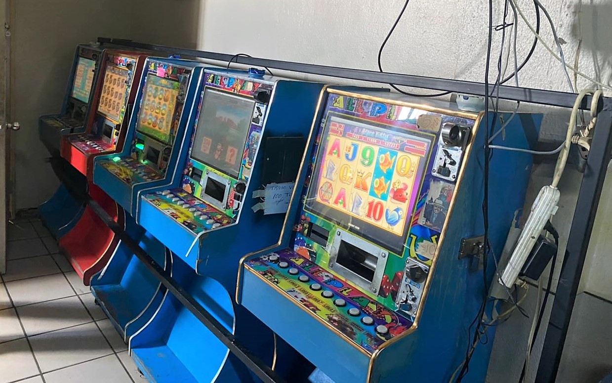 Asimismo, se encontraron cinco máquinas tragamonedas y nueve equipos de cómputo habilitados con juegos de azar.