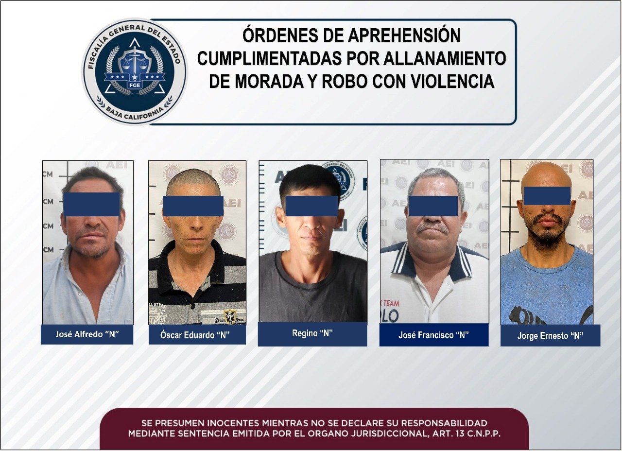 En primer término, por el delito de allanamiento de morada fueron detenidos José Alfredo “N”, Óscar Eduardo “N”, Regino “N” y José Francisco “N”.