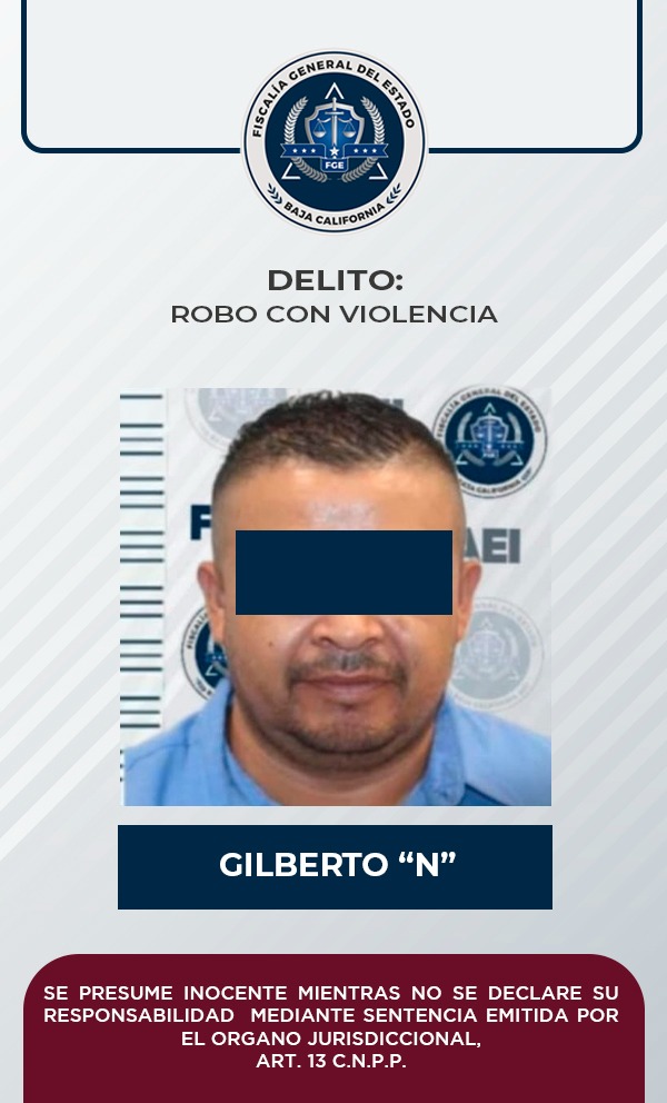 TIJUANA, B. C. - Por su presunta responsabilidad en el delito de robo con violencia, cometido en marzo del año en curso, elementos de la Fiscalía General del Estado, adscritos al Grupo de Robos, cumplimentaron una orden de aprehensión a un sujeto que responde al nombre de Gilberto “N”.