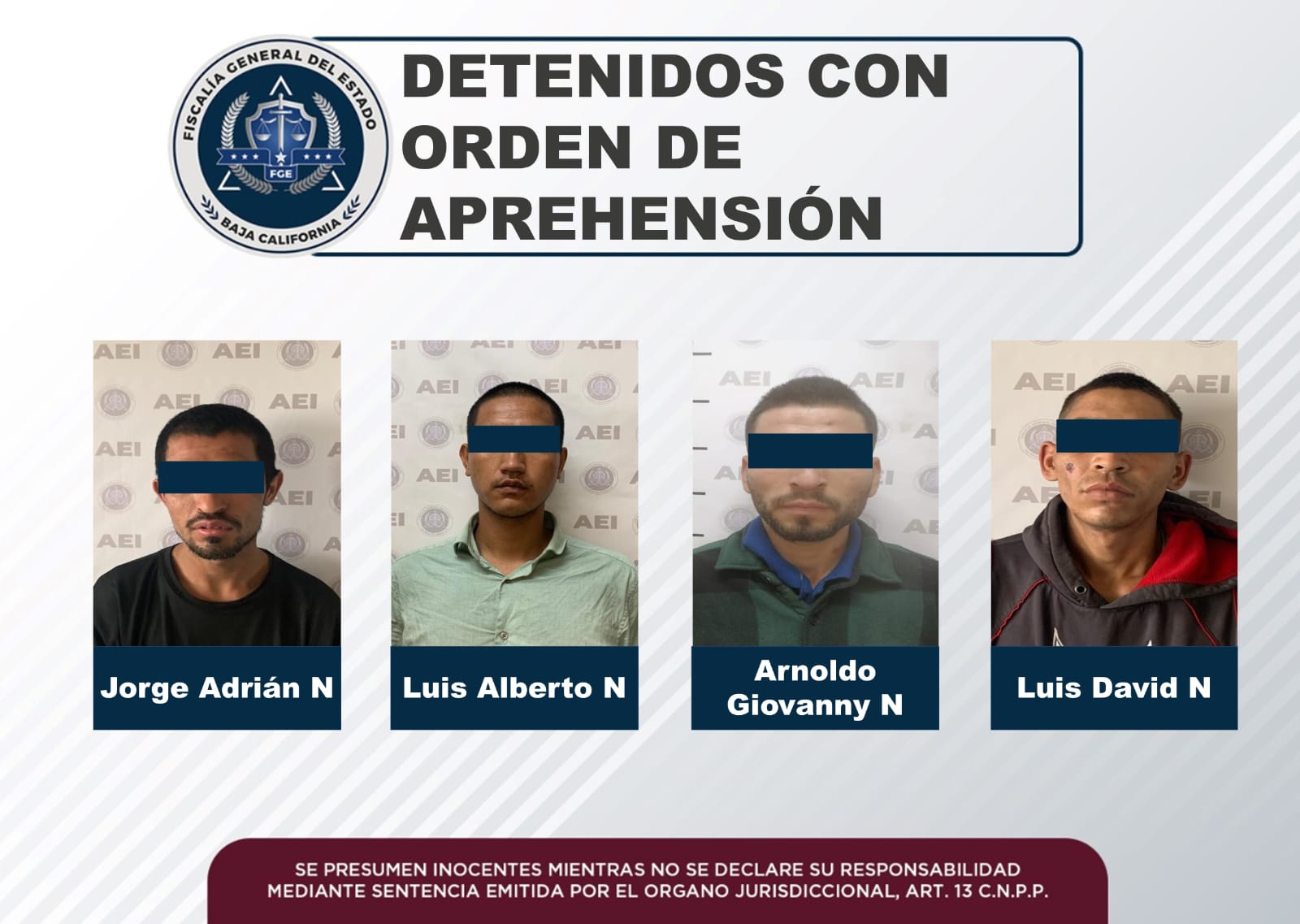ENSENADA, B.C. - 24 DE OCTUBRE DE 2022.- La Fiscalía General del Estado cumplimentó órdenes de aprehensión, por diferentes delitos, a cuatro hombres en el municipio de Ensenada.