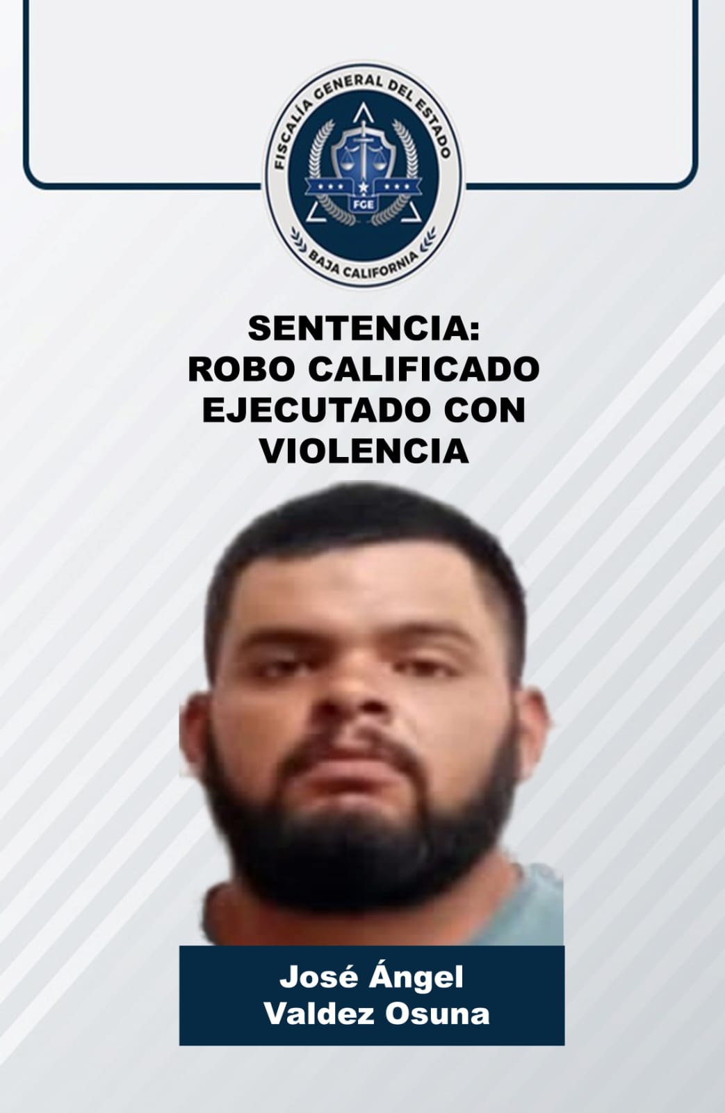 SAN QUINTÍN, B. C. - La Fiscalía Regional de San Quintín, obtuvo una sentencia condenatoria de 5 años y 4 meses de prisión contra José Ángel Valdez Osuna, por el delito de robo calificado a lugar cerrado y robo de vehículo de motor, ambos ejecutados con violencia.